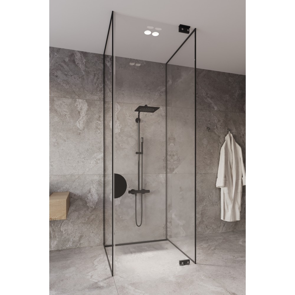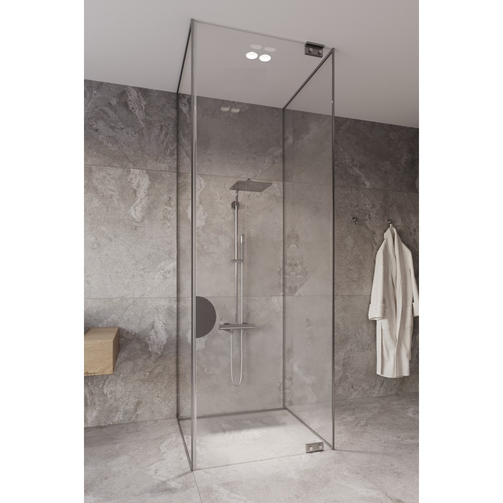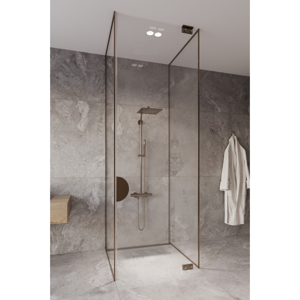 PREMIUM kolekcijas minimālisma stila trīs sienu dušas kabīne ar autentisku rokturi un šarnīra eņģēm.